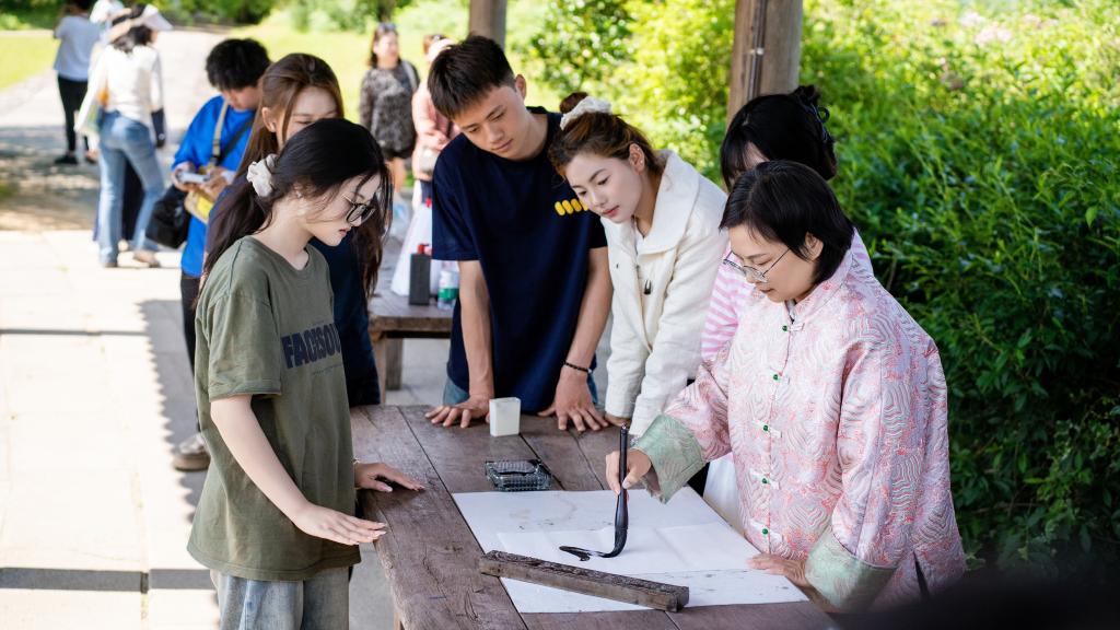 在守拙园,师生们开启了传统文化与思政教育融合之旅。大家驻足于“守拙归真”的匾额下,感悟陶渊明“开荒南野际,守拙归园田”的隐逸文化与淡泊名利的高尚情操;老师们以景为媒,从“修身齐家治国平天下”的儒家思想,讲到新时代青年的家国情怀;以陶渊明的人生选择为切入点,开展廉洁自律主题教育,引导同学们在艺术创作中坚守初心,在人生道路上恪守正道。沉浸式的文化体验,让传统文化不再是课本上的文字,而是滋养心灵、厚植文化自信的精神源泉。