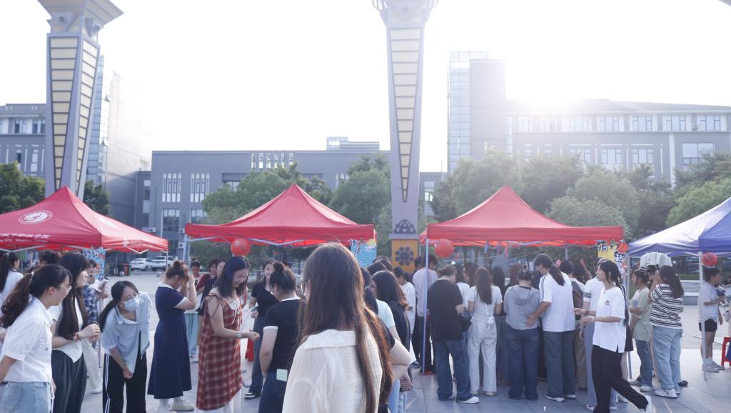 此次游园会活动内容丰富多样,既有趣味性又兼具文化内涵。首先,吸引大量师生热情参与的是玉兔套圈游戏。摆放在桌上的玩偶、零食和小物件成了大家争相赢取的目标,每位参与者手持五十个圈,试图将其精准投掷到心仪的奖品上。现场不时传出欢呼声和笑声,师生们在轻松的游戏中放松身心。
