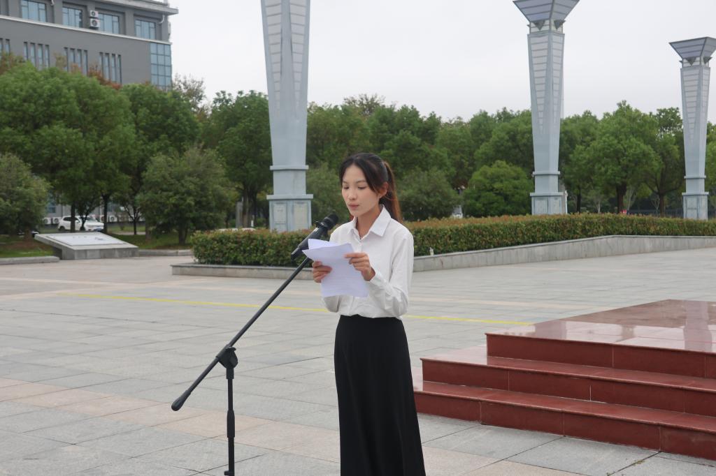 旭日初升,辉映赤子丹心;国歌嘹亮,激荡报国情怀。为庆祝中华人民共和国成立76周年,引领青年学子深刻感悟家国担当,10月13日7时,学校在南广场举行“庆祝中华人民共和国成立76周年 弘扬爱国主义精神”主题升旗仪式。本次仪式由生物医药学院团总支承办,学院党总支书记朱启来、辅导员代表、学生党员及各班级代表近200人参加,以庄严仪式凝聚奋进力量。升旗仪式由学管秘书姚佳妮主持。
