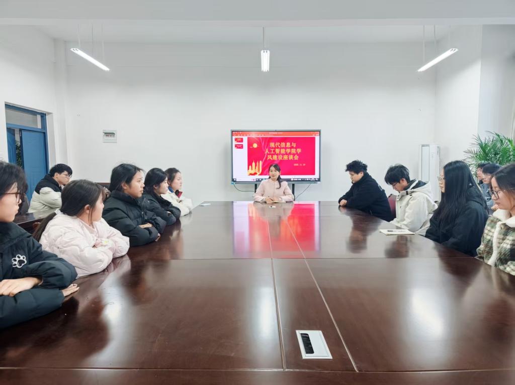 为深入贯彻落实“党建带团建”工作机制,推动学风建设常态长效,现代信息与人工智能学院近日以党建为引领,协同团学组织力量,创新采用多阵地联动模式,在“一站式”学生社区服务大厅、男女生宿舍区及学院102会议室分别组织开展了系列学风建设座谈会。学院党总支书记卢齐伟、党总支副书记张少敏、团总支书记王校怡、学管秘书蔡淼,以及各年级党员、入党积极分子、团支部书记和学生代表分场次参与,共同为优化学风建设建言献策。