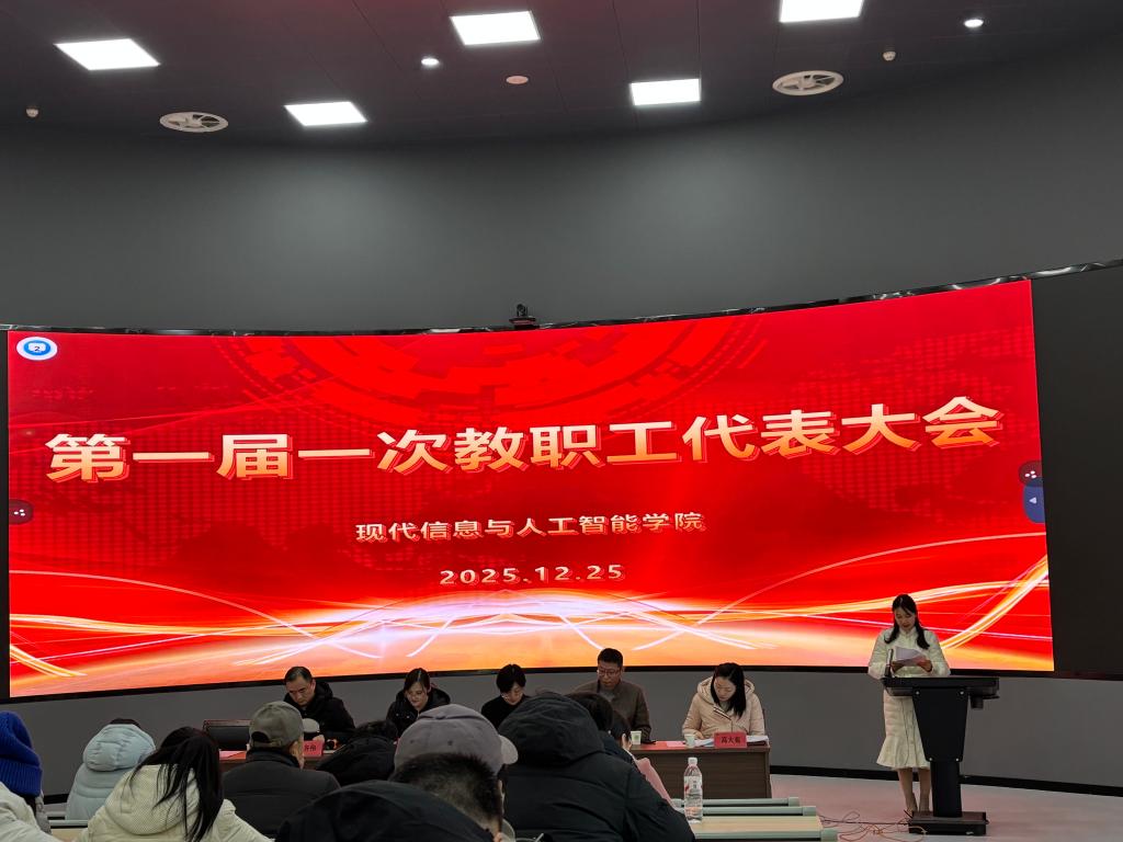 12月25日下午,现代信息与人工智能学院第一届教职工代表大会第一次会议暨第一届工会会员代表大会在润德楼一楼报告厅胜利召开。学院党总支书记卢齐伟主持会议,校党委委员、组织人事处处长杨莹,校学生处副处长田青青应邀出席,院长韩峰,副书记、分工会主席张少敏及全体教职工参加了会议。