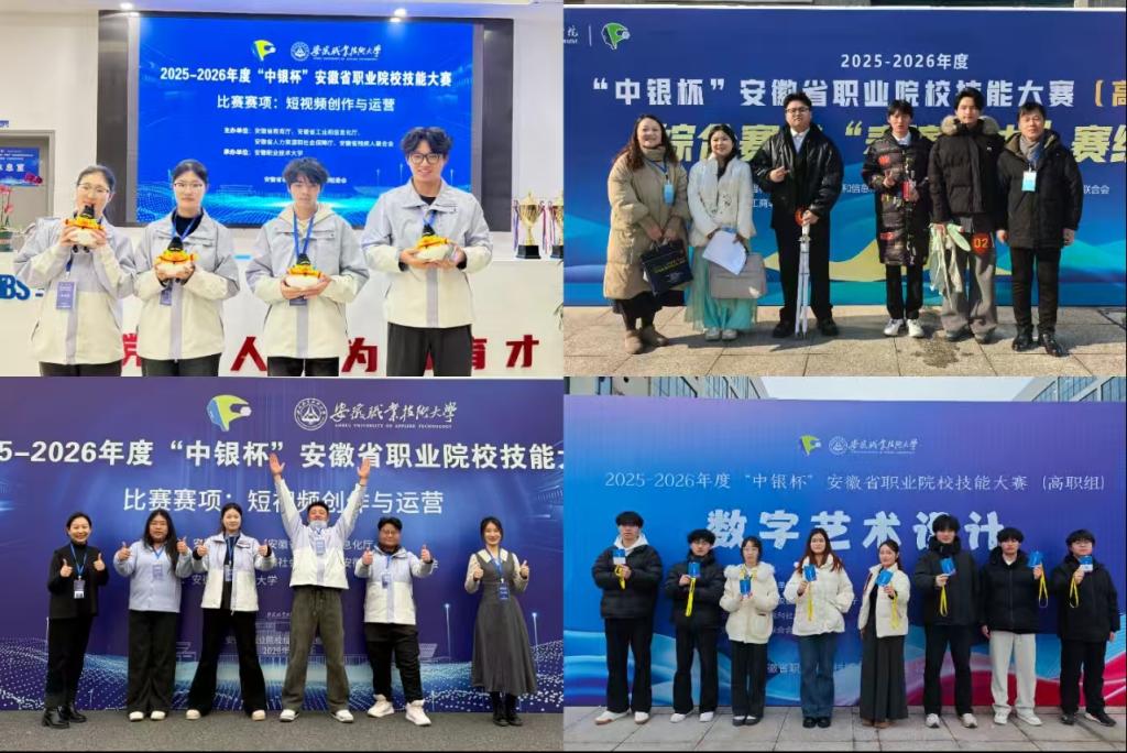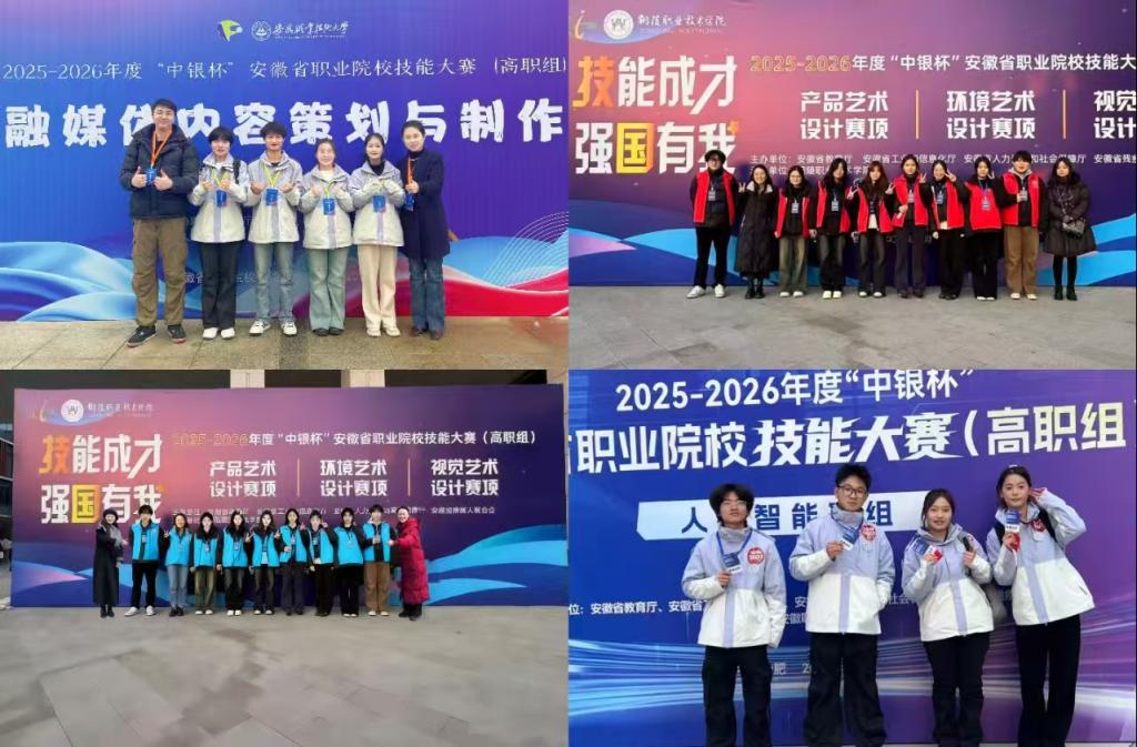 近日,2025-2026年度“中银杯”安徽省职业院校技能大赛圆满落幕。我校艺术与传媒学院学子在产品艺术设计、视觉艺术设计、表演艺术、数字艺术设计、人工智能应用、短视频创作与运营、融媒体内容策划与制作等多个热门赛项中全力以赴,历经月余磨砺与赛场激烈角逐,凭借扎实的专业功底、创新的创作理念与顽强的拼搏精神圆满完成全部赛事任务,充分彰显了新时代职业院校学子的精湛技能风采与昂扬青春担当。