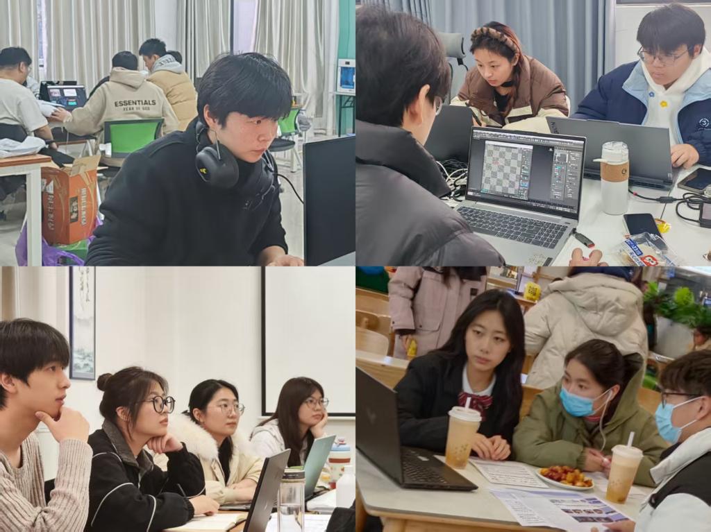 备赛期间,学院实训楼彻夜灯火通明,成为学子们追逐梦想的战场:产品艺术设计学子反复雕琢造型细节,视觉艺术设计学子深耕创意表达维度,数字艺术设计学子通宵调试技术参数,融媒体创作团队逐字打磨策划方案,短视频创作组精研镜头语言与剪辑逻辑。指导教师全程驻场跟班指导,针对赛事难点设计专项训练模块,精准点拨技能瓶颈;学院专门成立后勤保障组,从实训资源、生活服务到心理疏导全方位护航,助力学子在日复一日的磨砺中体悟工匠精神,全面提升综合职业能力。