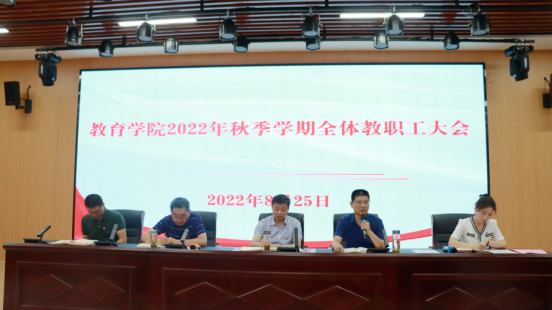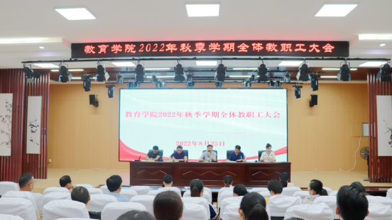 为切实做好2022年秋季学期各项工作,推进教育教学有序进行。8月25日,教育学院在C2北1102召开了全体教职工会议暨8月思想政治理论学习会,教育学院党政班子成员及全体教职工参加会议,会议由学院党总支副书记徐立娟主持。联系领导校党委副书记、校长汪上出席会议并作指导讲话。
