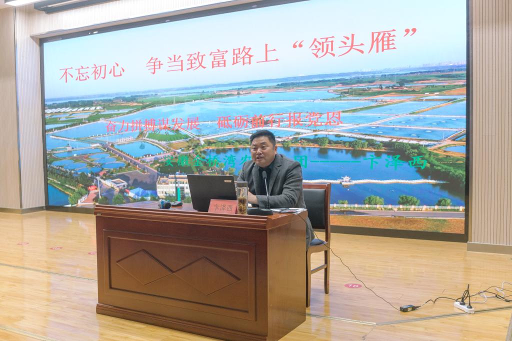 卞泽西作为本次主讲嘉宾,近年来他先后获得“安徽省劳动模范”、“安徽省优秀党务工作者”“安徽省非公企业党支部优秀书记”“安徽百佳新型职业农民”等称号。他创建的安徽金桥湾农业集团有限公司注册资金5900万元,占地面积2.27万亩,一期项目总投资1.72亿元,成为一家集绿色生态种养殖、有机农特产品种植及深加工、产业扶贫与乡村振兴为一体的现代农业科技创新型企业。30年来,他不忘初心、牢记使命,扎根农村、引进生态循环绿色生产技术,致力发展新型农业,带领一方群众脱贫致富,在希望的田野上阔步前行。