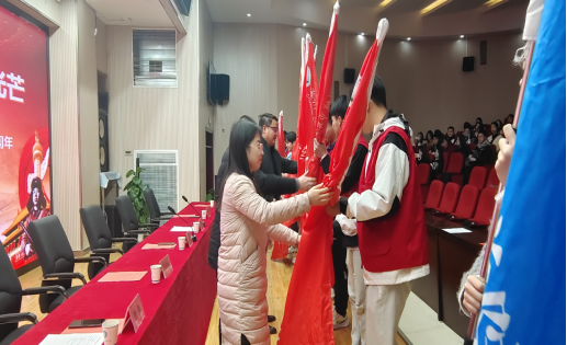 随后,张逍对管理与信息学院“红踔堂”志愿服务队去年的工作进行了总结,介绍了今年学雷锋志愿服务月活动内容和具体要求,宣布7个专业的“红踔堂”志愿服务先锋队成立,与会领导嘉宾为先锋队授旗。