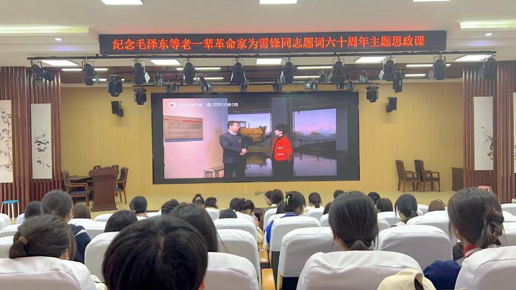 “纪念毛泽东等老一辈无产阶级革命家为雷锋同志题词六十周年”主题思政课,在人民网客户端直播,教育学院组织全院学生共同收看。