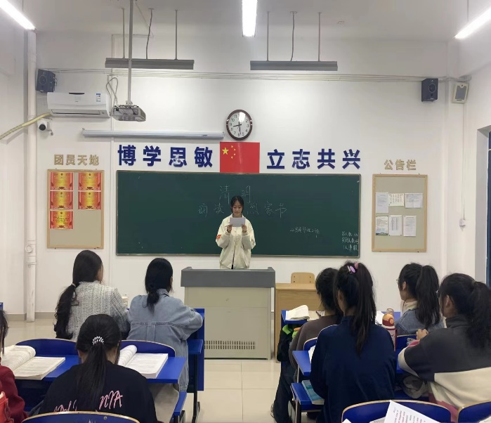 “紧扣爱国主题,培育新时代青年”——一是各班级召开主题班会,紧紧围绕“清明节的来源”、“移风易俗”以及“缅怀革命先烈”等内容,展开讨论交流,引领学生深入挖掘清明节文化内涵。二是通过“清明祭英烈”手抄报、观看爱国主义电影、黑板报创作等形式多样的活动,引导团员青年慎终追远、缅怀先辈,铭记历史、学会感恩,继承先烈遗志,珍惜幸福生活。