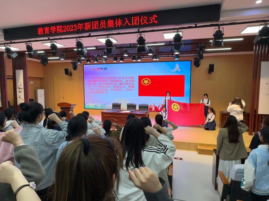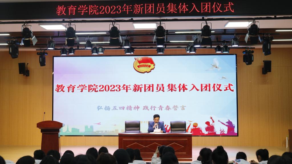 为进一步加强共青团员思想政治教育,引导广大团员青年继承和发扬“五四”精神,厚植爱党、爱国情怀,切实增强共青团员的责任感、使命感、荣誉感,4月27日,教育学院2023年新团员集体入团仪式在教育学院报告厅举行。教育学院团总支委员、辅导员代表、2023年新入团团员和各班级团支部书记参加本次入团仪式,入团仪式由学院团总支书记黄正顺主持。