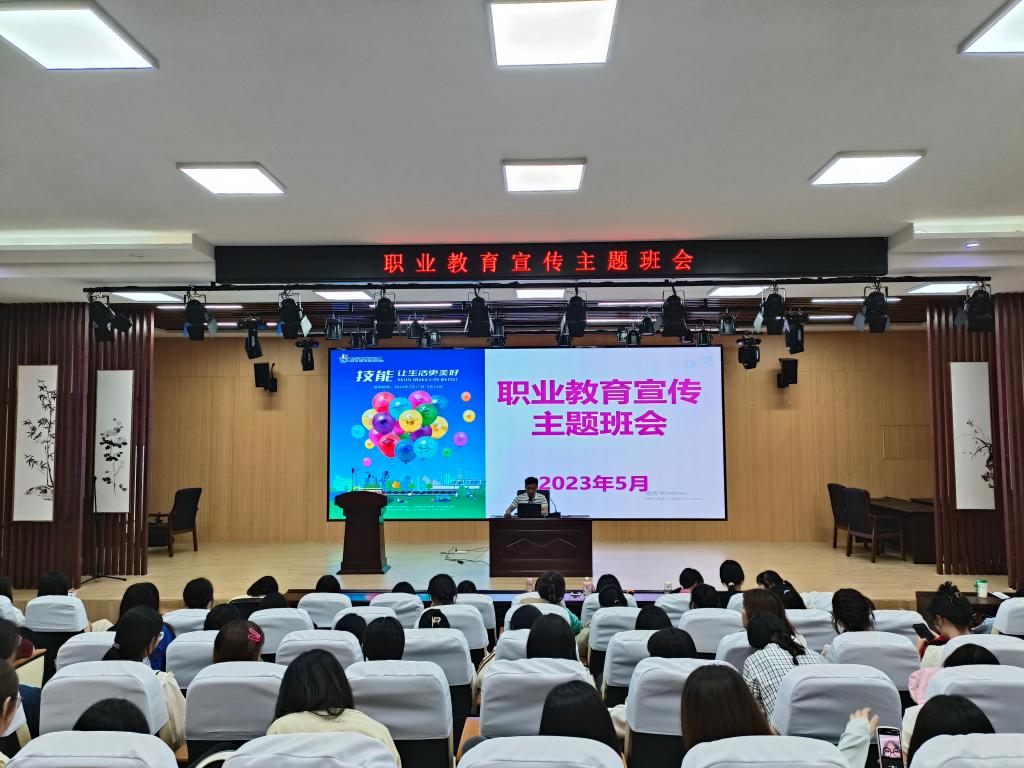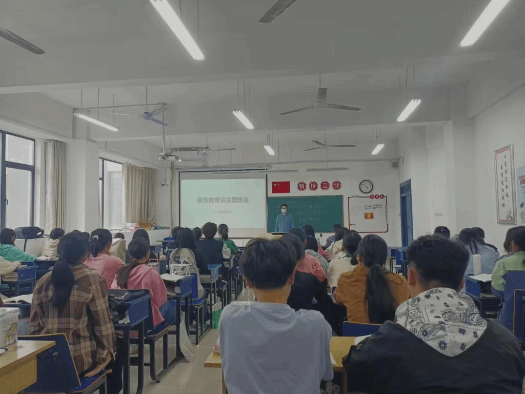 为大力宣传劳模精神、劳动精神、工匠精神,弘扬劳动光荣、技能宝贵、创造伟大的时代风尚,向学生普及《职业教育法》,让学生更加了解职业教育,在职业教育活动周期间,各班级开展了“技能成才 强国有我”主题班会活动。