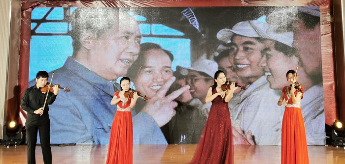 朱德顺在致辞中表示,今年适逢中华人民共和国成立70周年,在全党全国上下认真学习习近平新时代中国特色社会主义思想和第二批“不忘初心、牢记使命”主题教育开展之际,淮北师范大学“高雅艺术进校园”演出团队来到滁州城市职业学院,交流艺术教育成果,共同表达喜悦的心情。淮北师范大学将以此次演出为契机,进一步加强与滁州城市职业学院的交流与合作,共同推进校园文化艺术建设,为科教兴国、高教强省、服务地方经济社会发展和建设五大发展、美好安徽做出积极贡献。
