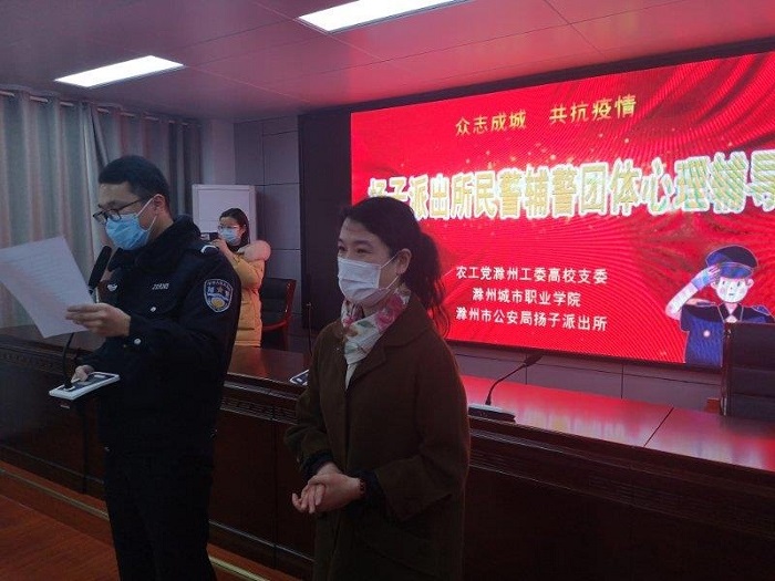 关爱特殊群体 融通战斗堡垒的“同心桥”。在全面抗击新冠肺炎疫情战役中,基层派出所的民警辅警是抗疫一线的战斗堡垒、特殊防线,为了缓解疫情和工作形成的压力,让他们带着健康积极的心理状态和情绪更好地投入工作。学院心理学副教授、国家二级心理咨询师穆玲老师走进滁州市琅琊区扬子派出所为民警和辅警们开展了一场心理团辅活动。穆玲老师准备了破冰暖场小游戏、具有特色的自我介绍、近期心理状况自我评估、心理小游戏等系列环节。民警和辅警们通过自我体验、团体游戏启发到每个人的总结分享,从开始的拘谨到积极参与,民警和辅警在轻松愉悦的氛围中情绪得到了的缓解和释放,进一步融洽了团队关系。广大民警辅警纷纷表示,穆老师的辅导生动有趣,实用性强,通过辅导学会了一些有效调节和应对心理问题的方式方法,同时也认识到良好的心态不仅有利于自己的日常生活,更能提高工作效率,为更好的战“疫”提供良好的精神保障。