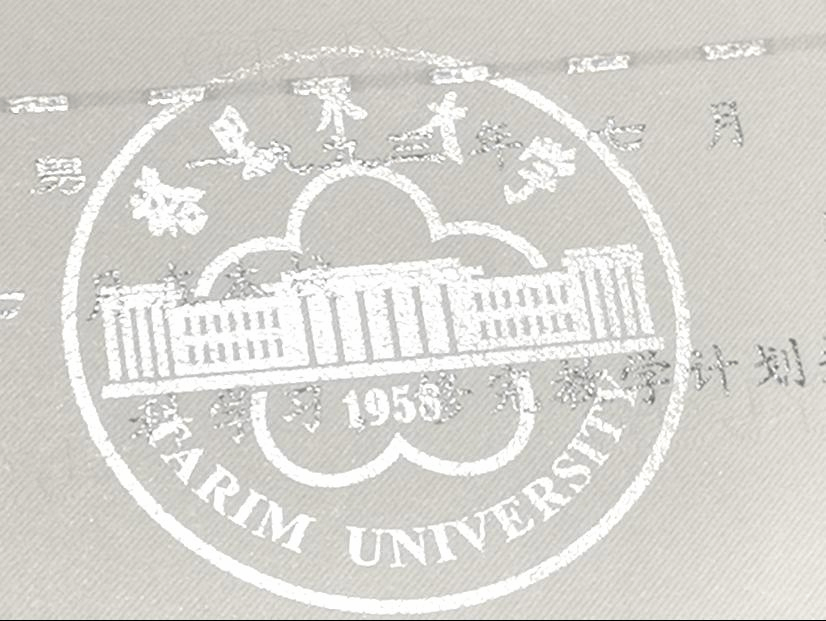 第六色-—UV印刷银白色塔里木大学logo;证书居中位置迎光不可见,测光可见光亮水印图案