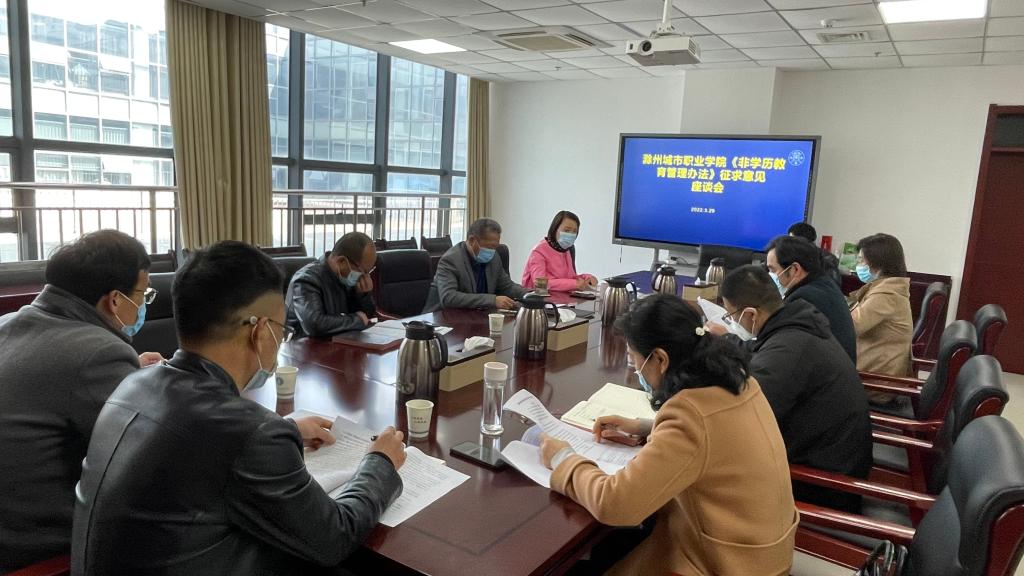 为规范我校非学历教育管理工作,提高非学历教育教学质量,按照教育部、省教育厅有关文件要求,继续教育学院起草了《滁州城市职业学院非学历教育工作管理办法》。3月29日上午,党委委员、校领导施向阳在第二会议室主持召开《办法》征求意见座谈会。继续教育学院、招生就业科、各二级学院相关负责同志参加会议。