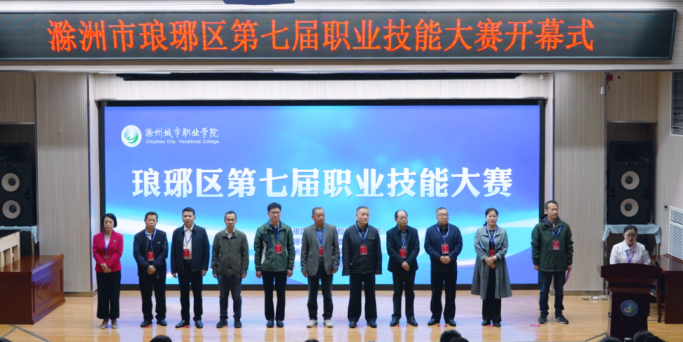 为贯彻落实国家及省市高技能人才队伍建设规划要求,进一步加强高技能人才培养工作,10月22日,滁州市琅琊区第七届职业技能大赛在我校成功举办。我校党委委员、校领导施向阳,滁州市人社局四级调研员张顺、我校党委委员、办公室主任陈通,琅琊区人社局局长张德余、琅琊区民政局局长剧伟、市人社局职业能力建设科科长王华涛、市人社局职业技能鉴定中心主任姜梦莲、琅琊区总工会副主席李向林、我校教务处处长戴锦明、继续教育学院院长许梅等领导出席大赛开幕式,开幕式由琅琊区人社局副局长王雨主持。