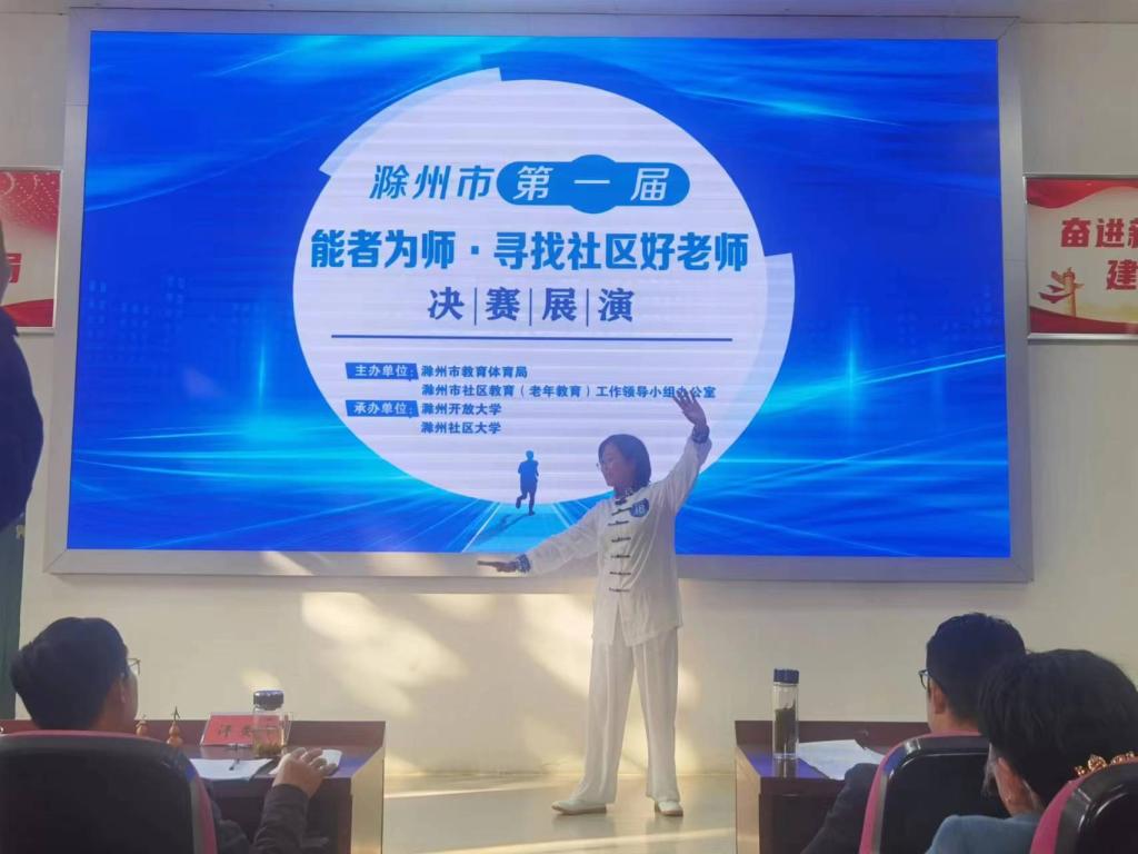 据悉,本次“能者为师·寻找社区好老师”活动赛程共分为初赛、决赛2轮,初赛以视频选拔的形式,我校老年大学5位教师结合任教的民族舞、凤阳花鼓、广场舞、瑜伽、太极养生等课程教学内容,精心准备,拍摄初赛视频,在滁州市近40名参赛选手中脱颖而出进入决赛。