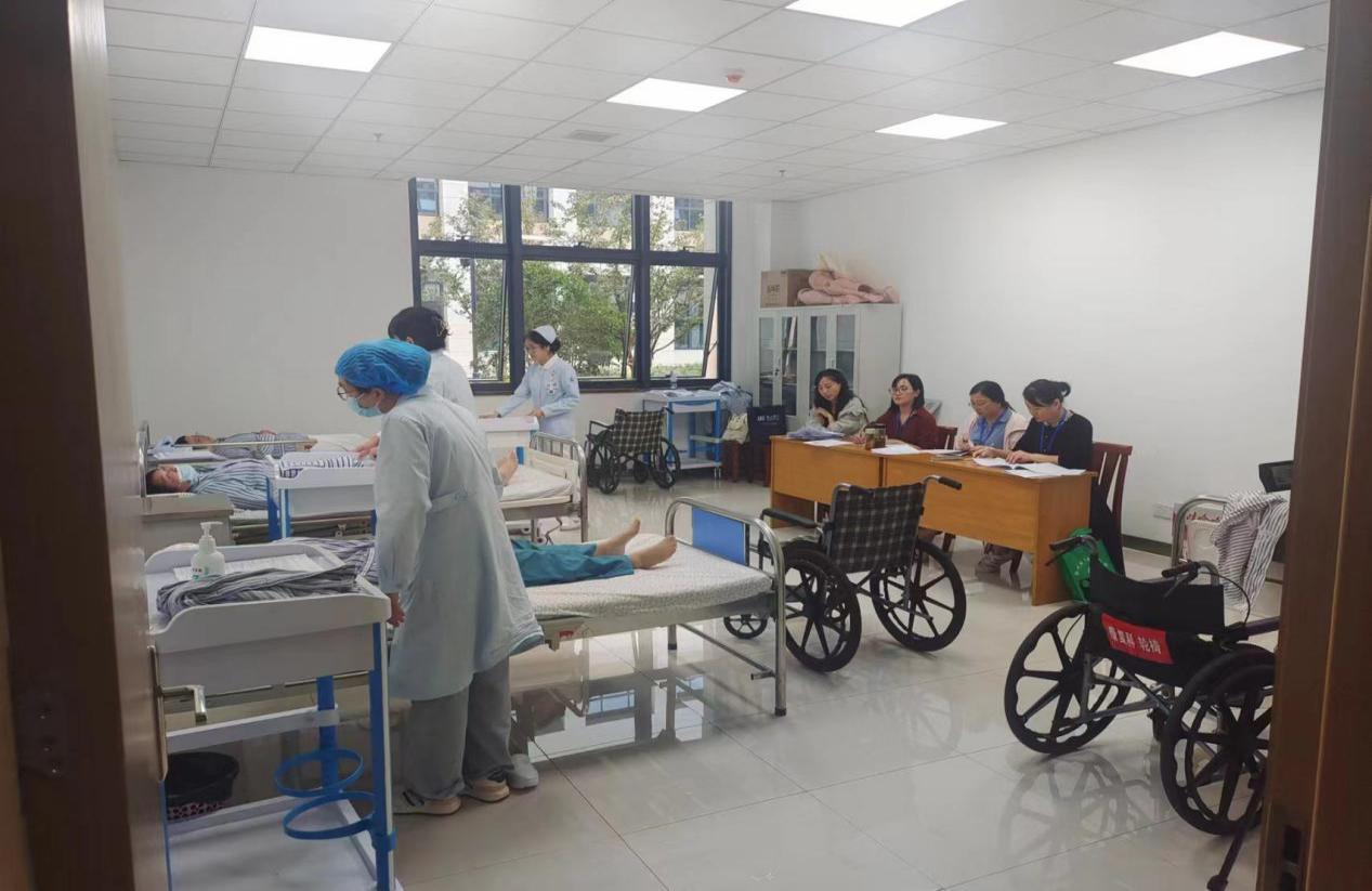 此次考试共有87名考生参加,因所有考生均有护士初级职称,根据关于印发《专业技术人员参加职业技能等级评价工作指引(试行)》 技管服〔2023〕3号文件精神要求,考生只需要参加实操考试,考察考生的专业知识和技能水平。王婷主任现场给所有考生,讲授了养老护理员操作技能的重点、要点,纠正学员的不规范动作,并强调养老护理员的工作要点“护理是基础”,“人文关怀”是重点,对老人进行照料时,需要时刻关注老人的情绪和精神状态,并给与温暖贴心的关怀。
