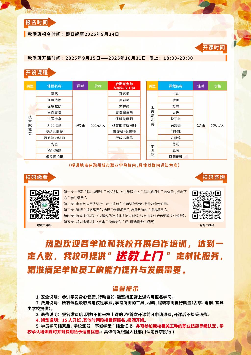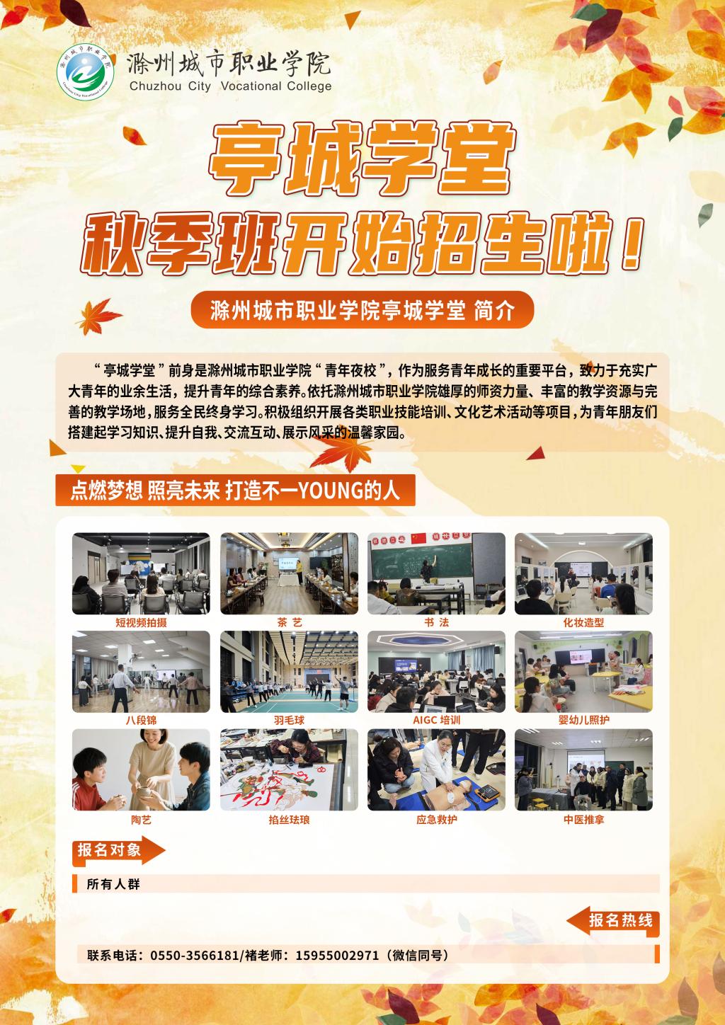 滁州城市职业学院“亭城学堂”秋季班开始招生啦!