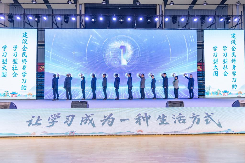 上午10时,开幕式在童声合唱《下白雨》《春日》中拉开序幕,随后,滁州市人民政府副市长刘江华发表热情致辞。会上宣读了2025年安徽省及滁州市“百姓学习之星”“终身学习品牌项目”名单,安徽省委教育工委委员、省教育厅副厅长卢鹏等领导为省级获奖代表颁发证书。全国“百姓学习之星”代表王开库、“终身学习品牌项目”代表琅琊区龙池社区“三堂”学校孙涛分别发言,分享学习心得与实践经验。舞蹈《鼓韵飞扬》《茉莉花开》等节目精彩纷呈,展现了终身学习的多样魅力。卢鹏副厅长在讲话中充分肯定全省终身学习工作成效,并对下一步发展提出期望。随后,与会领导共同按下启动键,标志着2025年安徽省暨滁州市全民终身学习活动周全面启航。开幕式在歌舞《滁阳别诸友》的动人旋律中圆满落幕。