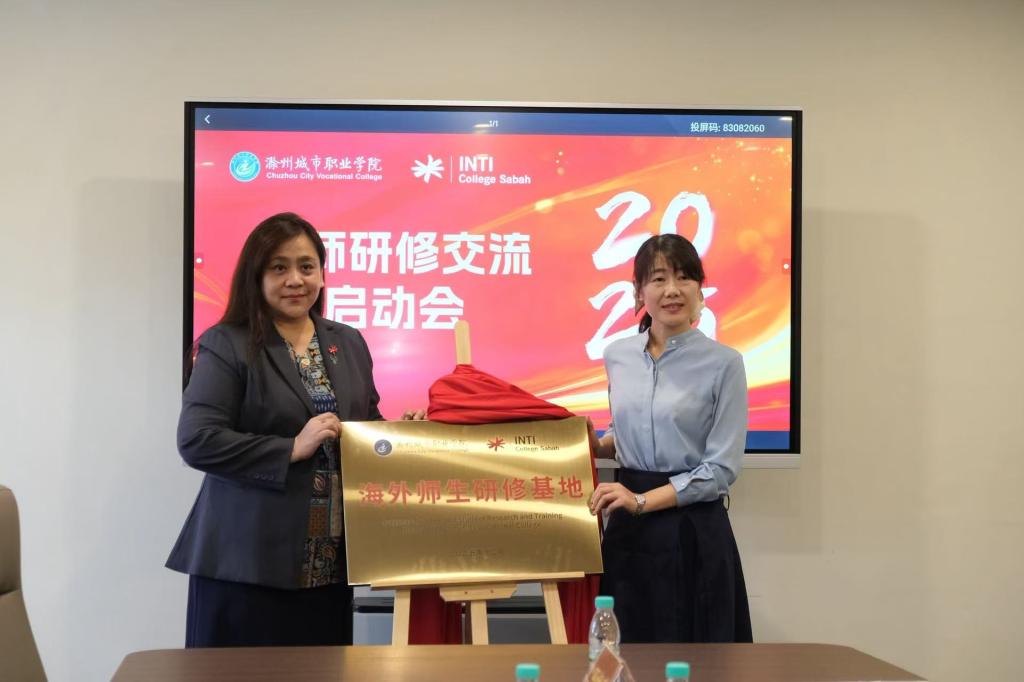 研修伊始,在沙巴英迪学院举行“职业技能培训基地”与“海外师生研修基地”挂牌仪式,为两校交流合作搭建基础平台。该基地的挂牌是落实黄山论坛战略合作协议中共建“滁州城市职业学院境外实训基地” 的重要举措。仪式后,研修团参观了该校,听取办学特色与合作意向介绍,并与当地中国留学生座谈,了解海外学习生活情况,为学校优化国际化人才培养相关工作收集参考信息。