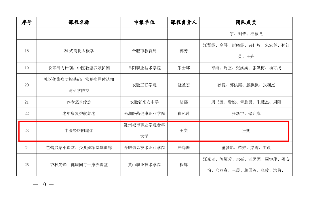 近日,安徽省教育厅公布2025年社区教育优秀课程资源遴选结果,我校老年大学特色课程《中医经络阴瑜伽》成功入选省级优秀课程资源库。