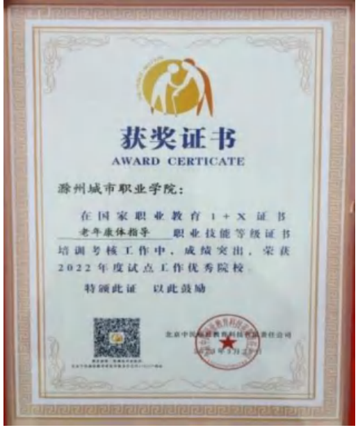 21-22、国家职业教育1+X证书“老年康体指导”试点工作优秀院校、示范院校、教育部1+X中医体质评估与应用职业技能等级师资证书
