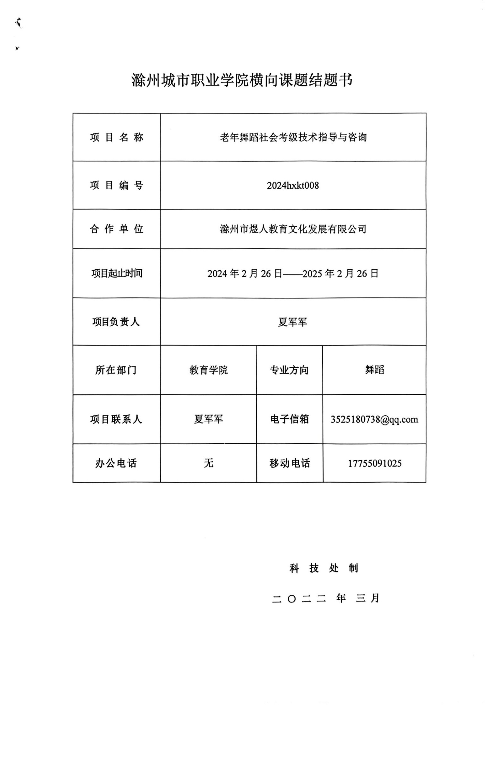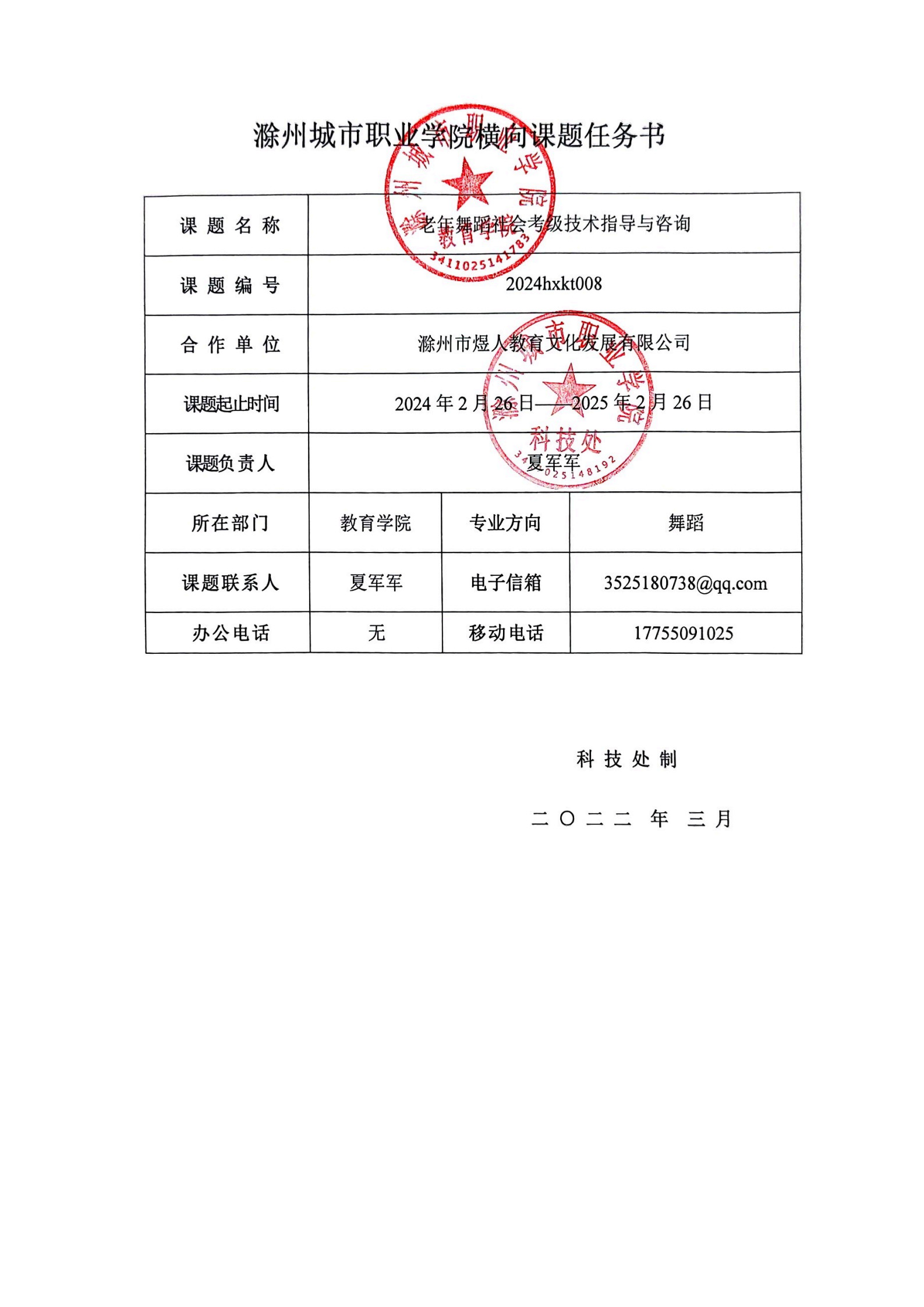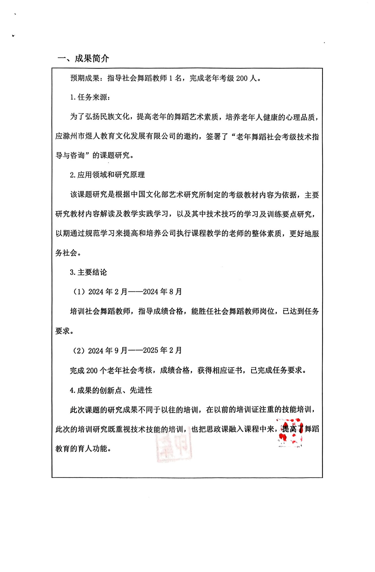 老年舞蹈社会考级技术指导与咨询(夏军军横向课题)