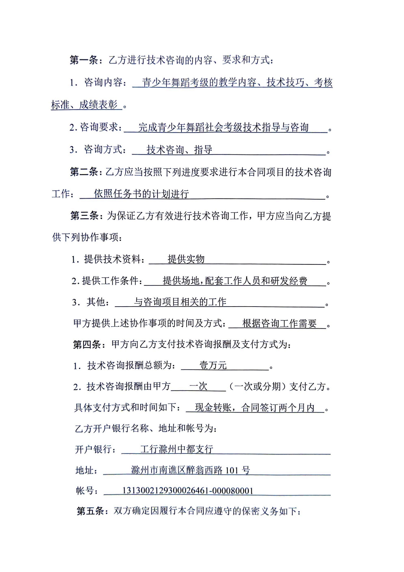 青少年舞蹈社会考级技术指导与咨询(夏军军横向课题)