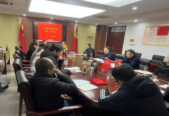 2月22日,滁州城市职业学院召开科技工作会议。校党委副书记、校长汪上,校党委委员、副校长曹士东,校党委委员、组织人事处处长徐云川,教务处处长戴锦明,各院(部)院长(主任)、副院长(副主任)及科技处全体工作人员出席会议。会议由科技处处长杜裕民主持。