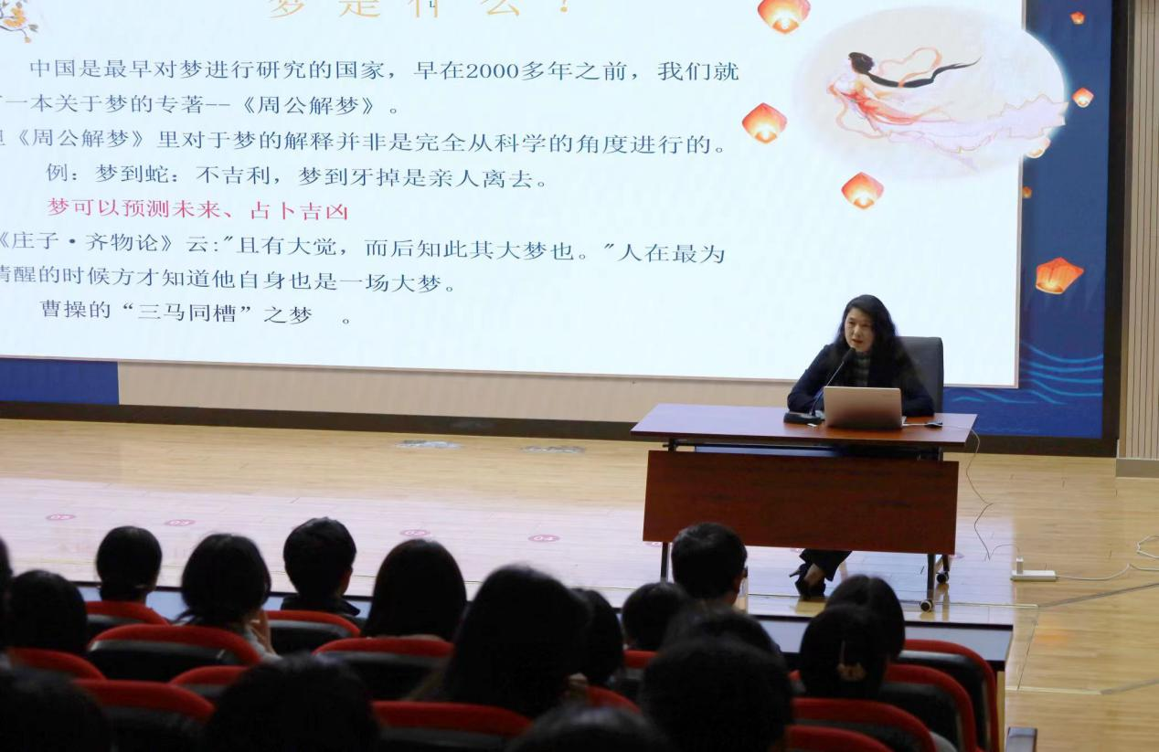 2023年3月29日下午,在图文中心四楼报告厅,由科技处、校科协联合举办了“梦的解析”为主题的科普知识讲座。主讲老师为国家二级心理咨询师、我校心理学副教授穆玲老师。本次共有200余名师生聆听了这场报告。