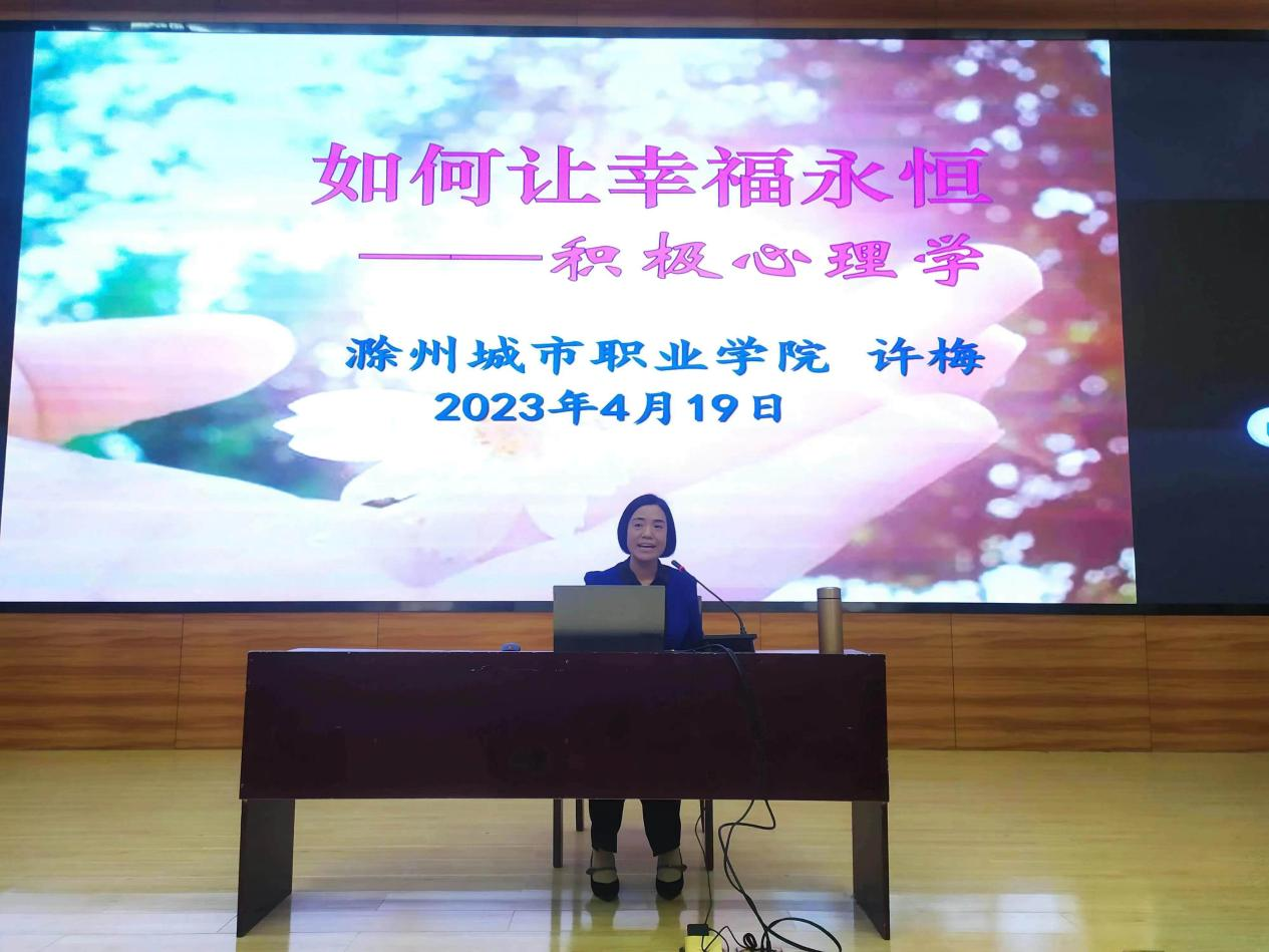 2023年4月19日下午,由科技处、校科协联合举办的系列科普知识讲座在护理学院B2一楼报告厅举行。继续教育学院许梅院长做了题为“如何让幸福永恒:积极心理学”的报告,来自五个教学院部200余名师生共同聆听了这场报告。