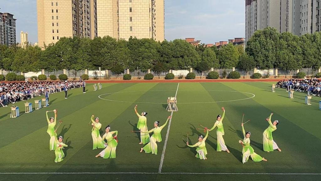 在初秋和煦的阳光中,凤阳花鼓艺术团的姑娘们身穿传统表演服饰,手持花鼓,在文峰学校的操场上随着音乐翩翩起舞。精彩的演出仿佛让人越过历史的帷幕一眼览尽千年的民间风光,目不暇接的精彩画面展现了凤阳花鼓独特的文化魅力。这场演出为滁州市文峰学校科技节增添了一道亮丽风景线,师生们情不自禁地报以热烈的掌声。