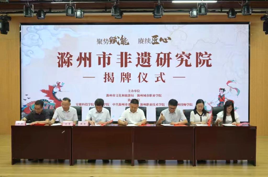 在与会代表的共同见证下,共建各方进行现场签约,并为“滁州市非物质文化遗产研究院”揭牌。