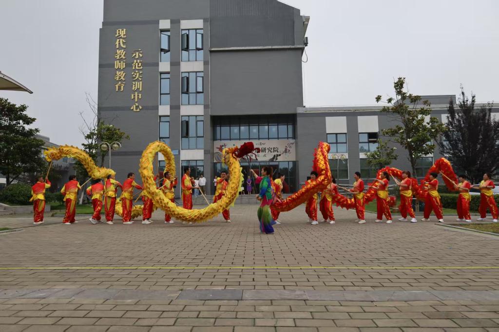 师徒对接仪式后,参会人员在现代教师示范实训中心广场观看了凤阳花鼓、凤阳花鼓戏、南谯民歌、全椒民歌、二龙戏蛛、来安秧歌灯等6个非遗项目演出。在一楼展厅欣赏了凤画、剪纸、全椒儒林根雕、非遗文创等非遗文创展示。