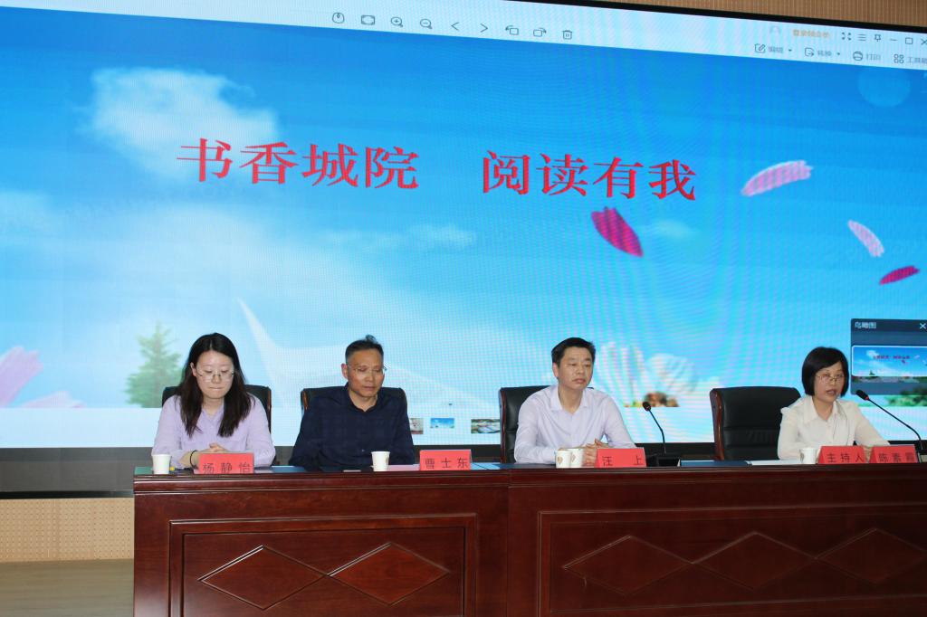 为迎接第28个世界读书日,激发全校师生读书兴趣,营造浓厚的读书氛围,创建“书香校园”,4月19日下午3点,我校在教育学院报告厅举行“书香城院,阅读有我”第八届读书月启动仪式,校党委副书记、校长汪上,校党委委员、副校长曹士东,校团委副书记杨静怡、各学院副书记、学管秘书及学生代表参加了本次活动。启动仪式由图书馆馆长陈素霞主持。