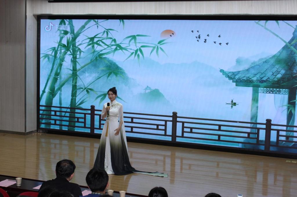 艺术与传媒学院神欣怡深情演唱《定风波·莫听穿林打叶声》,“莫听穿林打叶声,何妨吟啸且徐行”词人旷达超脱的胸襟,寄寓着超凡脱俗的人生理想。
