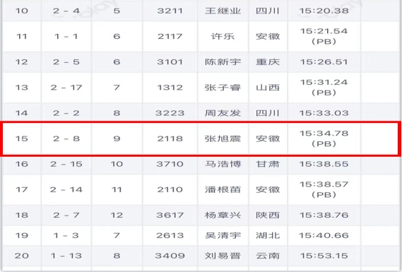 中华人民共和国第一届学生(青年)运动会(简称“学青会”)115日晚在广西南宁隆重开幕。我校医学院学生张旭震代表安徽省参加了119日上午举行的学生甲组5000米比赛,最终获得比赛第15名,并以15:34.78的成绩打破由其本人保持的15:53.10原安徽省大学生(非体育生类)5000米纪录!祝贺!