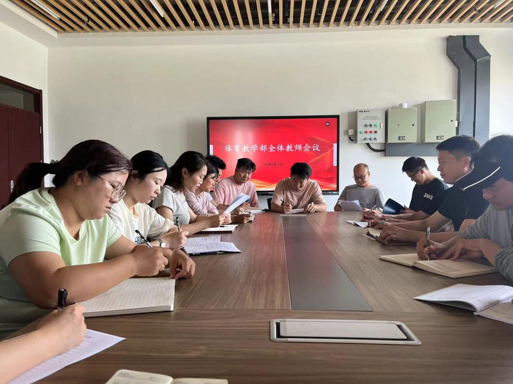 为进一步做好期末体育教学管理工作,落实学院高质量、高标准的教学精神,确保期末教学工作的有序进行。6月12日上午9点,体育教学部在体育馆二楼会议室召开全体教师会议,对本学期体育教学工作进行了深入总结和期末工作的详细安排,体育教学部全体教师参加了本次会议。体育教学部党支部书记、主任张瑞全主持会议并讲话。