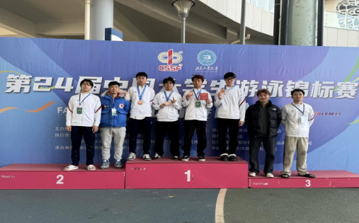 12月6日至10日,第24届中国大学生游泳锦标赛(北方赛区)在安徽省滁州市奥体中心游泳馆隆重举行。此次比赛吸引了全国北方各省份114所大学、近1100名运动员参与。在领队张瑞全和教练钟睿的带领下,我校9名运动员经过紧张激烈的角逐,在个人项目获得男子乙组50米自由泳第七名、男子乙组200米自由泳第八名、男子乙组50米蛙泳第七、第八名。