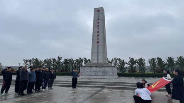活动开始前,党总支书记张瑞全发表了讲话。他向党员教师们简要介绍了烈士陵园的历史背景和英雄事迹,强调了铭记历史、珍惜和平、砥砺前行的重要性。接着,在烈士陵园革命英雄纪念碑前举行了隆重而庄严的扫墓仪式,党员代表向革命烈士纪念碑敬献花篮,表达对烈士们英勇事迹的敬仰和缅怀。党员教师们肃立默哀,缅怀先烈,表达对他们的敬仰和感激之情。通过重温入党誓词,在铿锵的誓言中,党员教师们的初心受到洗礼,进一步增强了党员教师的责任感和使命感。