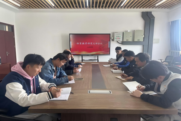 2025年4月2日下午,体育教学部党支部在体育馆二楼会议室开展全体主题党日活动,活动由党支部书记马肖义主持,全体党员参加。