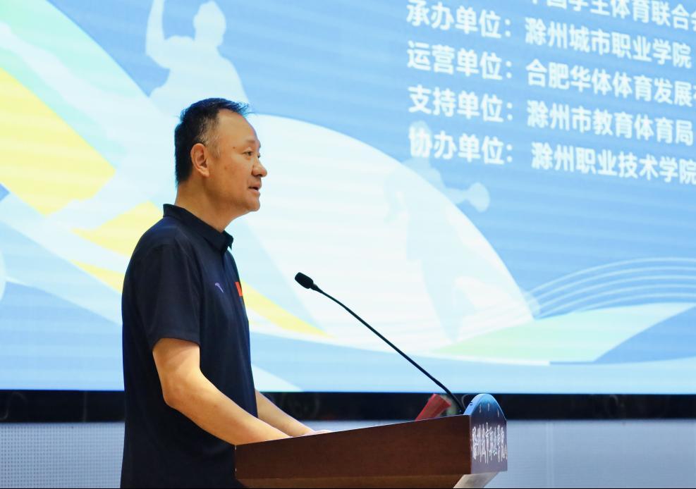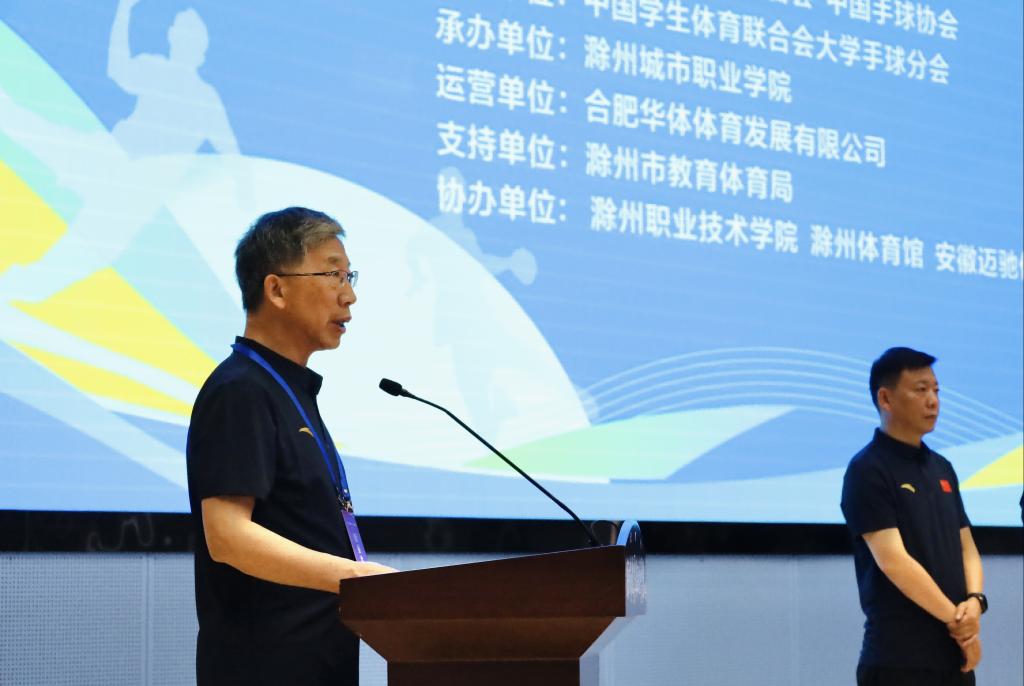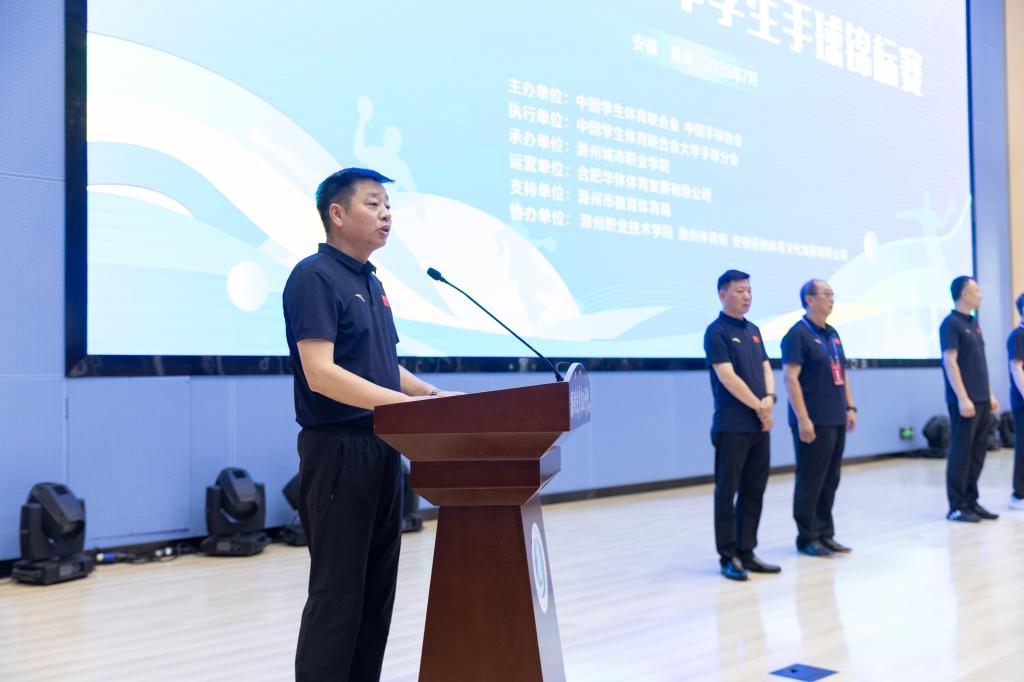 滁州城市职业学院党委书记王燕永致欢迎词,他表示,学校一直致力于体育事业的发展,特别是手球运动。学校积极推广手球文化,开设手球选修课,组建专业手球队伍,建设专业场地,近年来在各类比赛中屡获佳绩,为滁州手球事业的发展做出了积极贡献。他强调,此次承办锦标赛,既是对学校体育工作的肯定,也是学习、交流、提升的一次宝贵机会,学校将全力做好赛事服务和保障工作,确保比赛顺利进行。