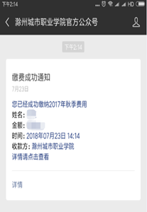 2021级新同学: 热烈祝贺你被滁州城市职业学院录取!为了您顺利入学,现将新生办理缴费、入学注册手续等有关事项通知如下: 一、缴费时间:入学缴费时间为2021年1月30日—3月30日。 二、缴费办法:由于疫情影响,经领...