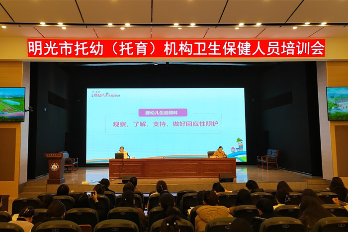 3月26日上午,应明光市卫健委、明光市教体局邀请,我院保育师工种负责人曹艳老师出席明光市托幼(托育)机构卫生保健人员培训会并做主题讲座。曹艳老师围绕“观察、了解、支持,做好回应性照护”这一主题,从托育师职业守则入手,诠释回应性照护的深刻内涵,并以回应性进餐照护为例,深入讲解托育机构生活照护SOP流程,为一线托育教师的照护工作提供参考及评价标准。讲座得到明光市各级园所与会人员的一致好评。据悉,本次培训...