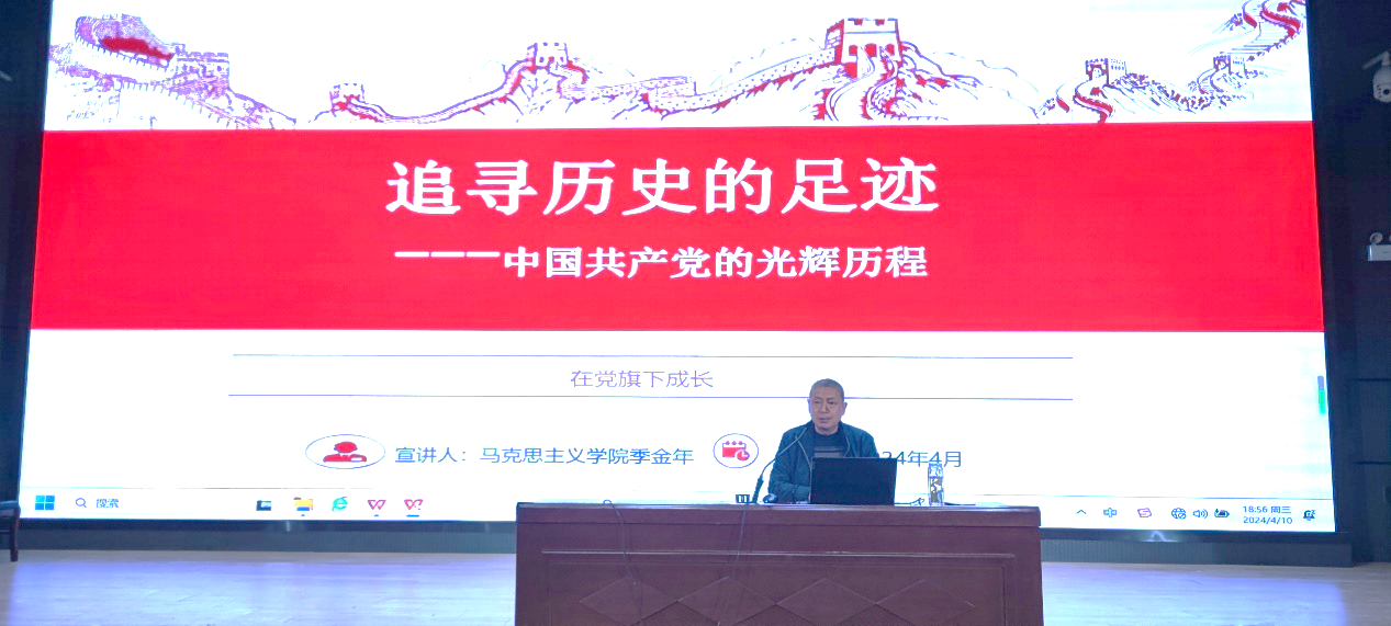 为进一步加强对入党积极分子的培养、教育,提高政治觉悟和理论水平,深入学习贯彻习近平新时代中国特色社会主义思想和党的二十大精神。4月11日晚,马克思主义学院党总支书记、院长季金年在润德楼4楼报告厅为2023年入党积极分子作题为《追寻历史的足迹—--党的光辉历程》专题党课。季金年首先自述入党的心路历程,生动形象地讲述自己向往加入中国共产党,为党奉献的蜕变过程。主要讲述了申请入党时思想的转变、成为入党积极分子...