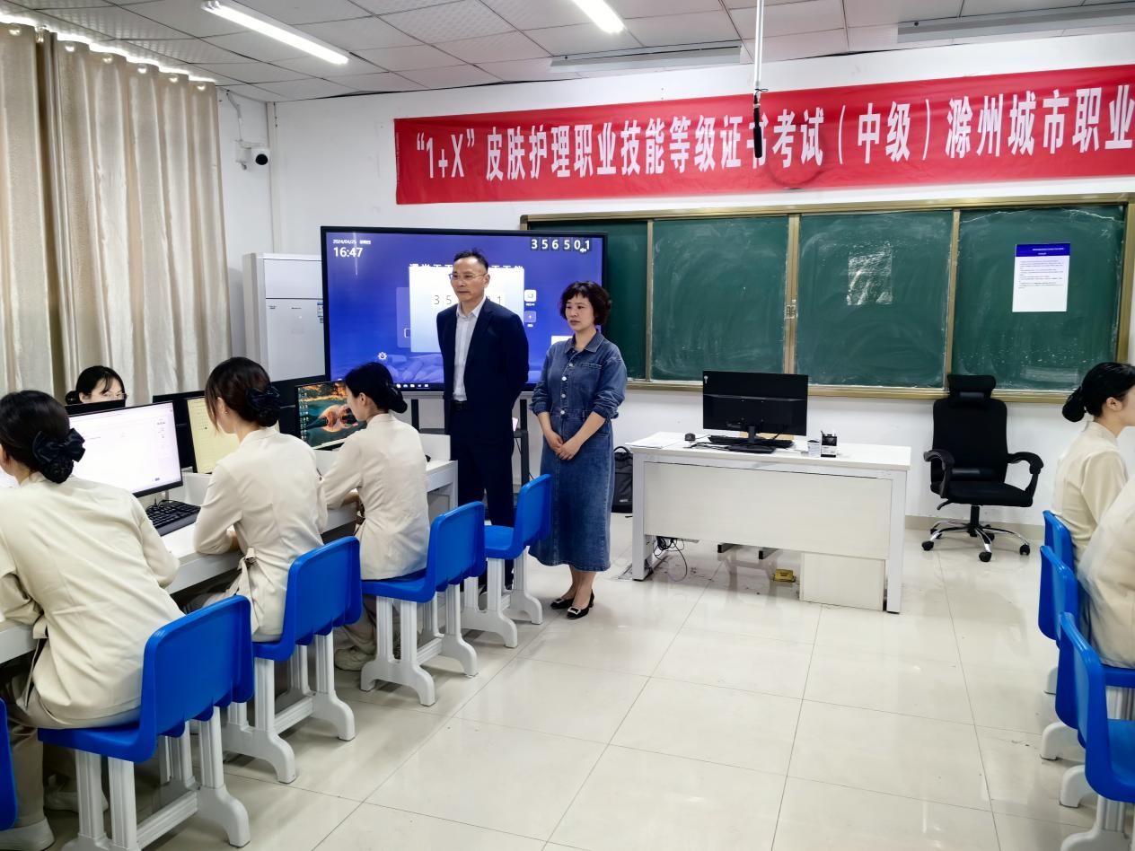 为贯彻落实《国家职业教育改革实施方案》,持续推进“1+X”证书制度试点工作,4月25日-26日,教育部“1+X”皮肤护理职业技能等级考试(中级)滁州城市职业学院考点开考,医学美容技术专业50名考生参加了理论机考和实操考试。受培训评价组织哈尔滨华辰生物科技有限公司(REVACL润芳可)委托,皮肤护理安徽工作站姜怡青担任线上监考巡考员,校党委委员、副校长曹士东及医学院副院长徐旭参与现场巡考。为确保此次考试顺利有序、公平...