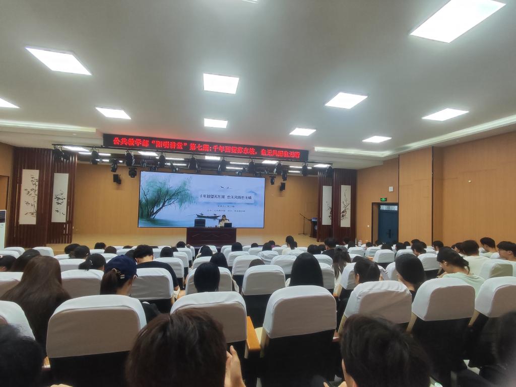 6月19日下午,公共教学部“阳明讲堂”系列讲座第七期在教育学院报告厅开讲。此次讲座由公共教学部副教授、宣传统战部副部长张少敏主讲。张少敏以“千年回望苏东坡, 也无风雨也无晴”为主题,和来自各个专业的师生分享了苏轼坎坷起伏的一生,以及他的道家思想。在讲座中,张少敏老师首先讲述了苏轼的生平事迹,让大家了解到苏轼不仅是一位文学家、书法家、画家,同时还是一位教育家、美食家、治水专家、抗疫专家,是真正的千古...