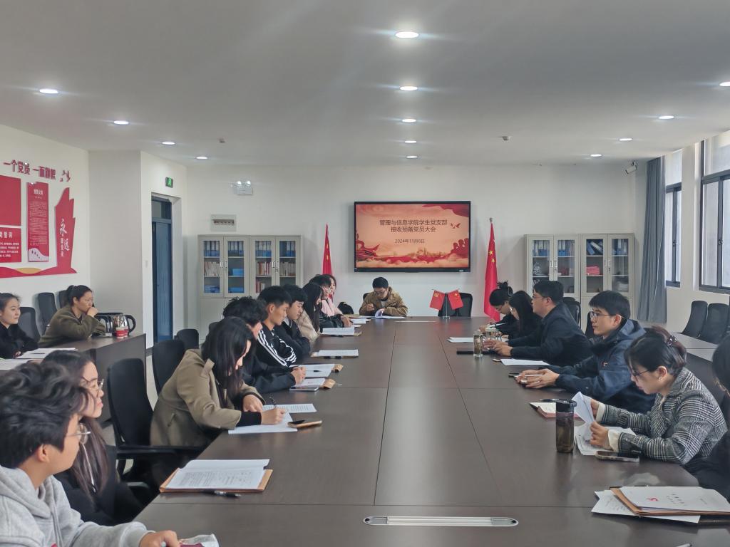 为进一步加强学生党组织建设,壮大学生党支部力量,11月8日下午,管理与信息学院学生党支部在润德楼301会议室召开接收预备党员大会,管理与信息学院党总支书记陈兴旺主持本次会议,学生党支部全体党员参加会议。本次会议严格按照党组织接收预备党员各项程序进行。会议伊始,在清点完到会人数之后,党员发展对象逐一向支部大会宣读入党志愿书,汇报自身对党的认识、入党动机、预备期间的工作情况和学习成果,表达了入党的志愿和...