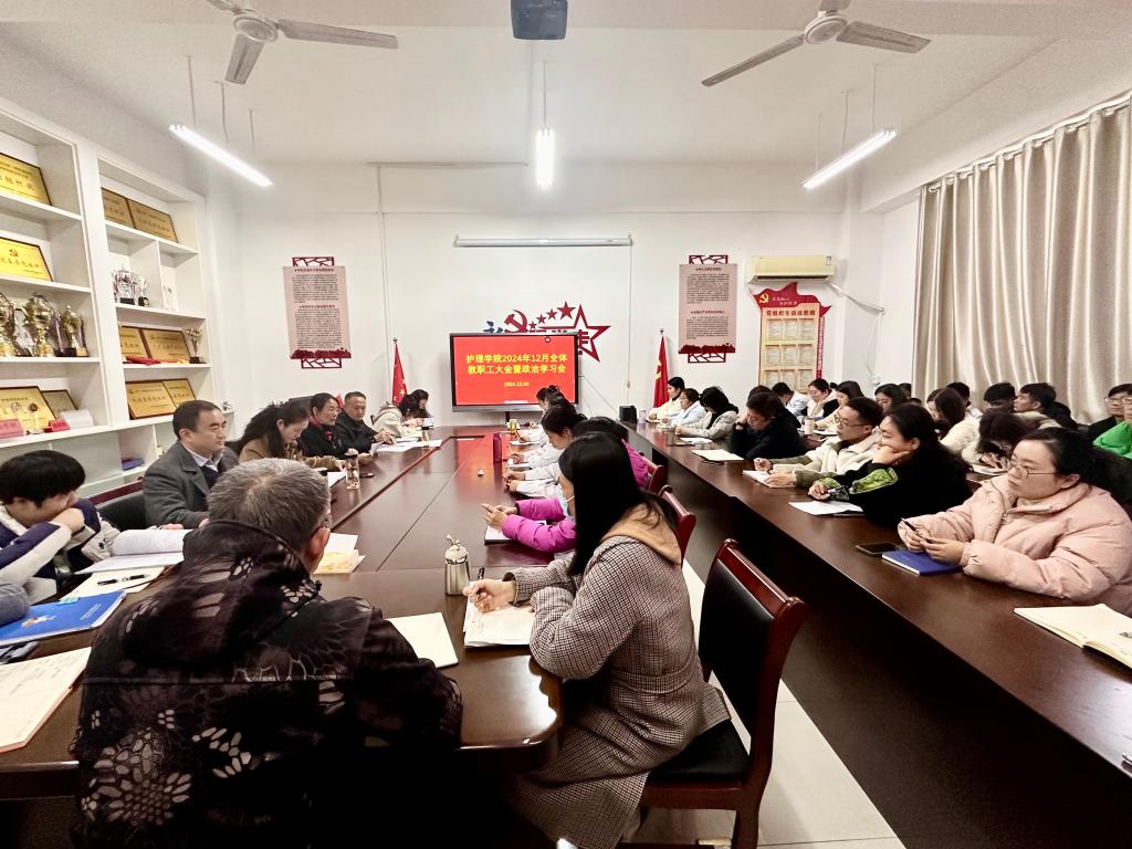 12月5日下午,在仁德楼106党员活动室,护理学院召开全体教职工大会,护理学院党政班子及全体教职工参加会议,会议由副院长李勋华主持。会议伊始,党总支书记蔡季秋带领全体教职员工集中学习师德师风教育,引导教职工以案为鉴、坚守底线,不断加强自我修养,把教书育人和自我修养结合,真正做到以德立身、以德立学、以德施教、以德育德。随后,党总支副书记卢齐伟和教学秘书张瑞修分别对本学期的政治教育工作及教学工作进行了布...