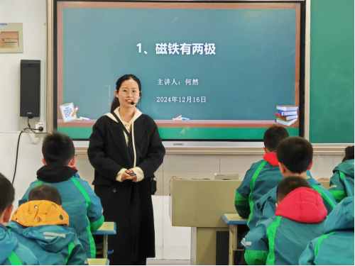 为深入推进教育学院与滁州市实验小学共建的科学素养教育基地工作,促进校际协同育人迈向新高度,12月16日下午,教育学院组织师生前往滁州市实验小学开展了一堂科学实验课,带领孩子们踏上了一场充满奇思妙想的科学之旅。《磁铁有两极》课堂伊始,何然老师以磁铁有什么本领的问题为导入,点燃了同学们的好奇心与求知欲,大家纷纷踊跃参与讨论。在何老师的巧妙引导下,同学们通过磁铁的吸铁能力的深入探究,逐渐揭开了知识的神秘...